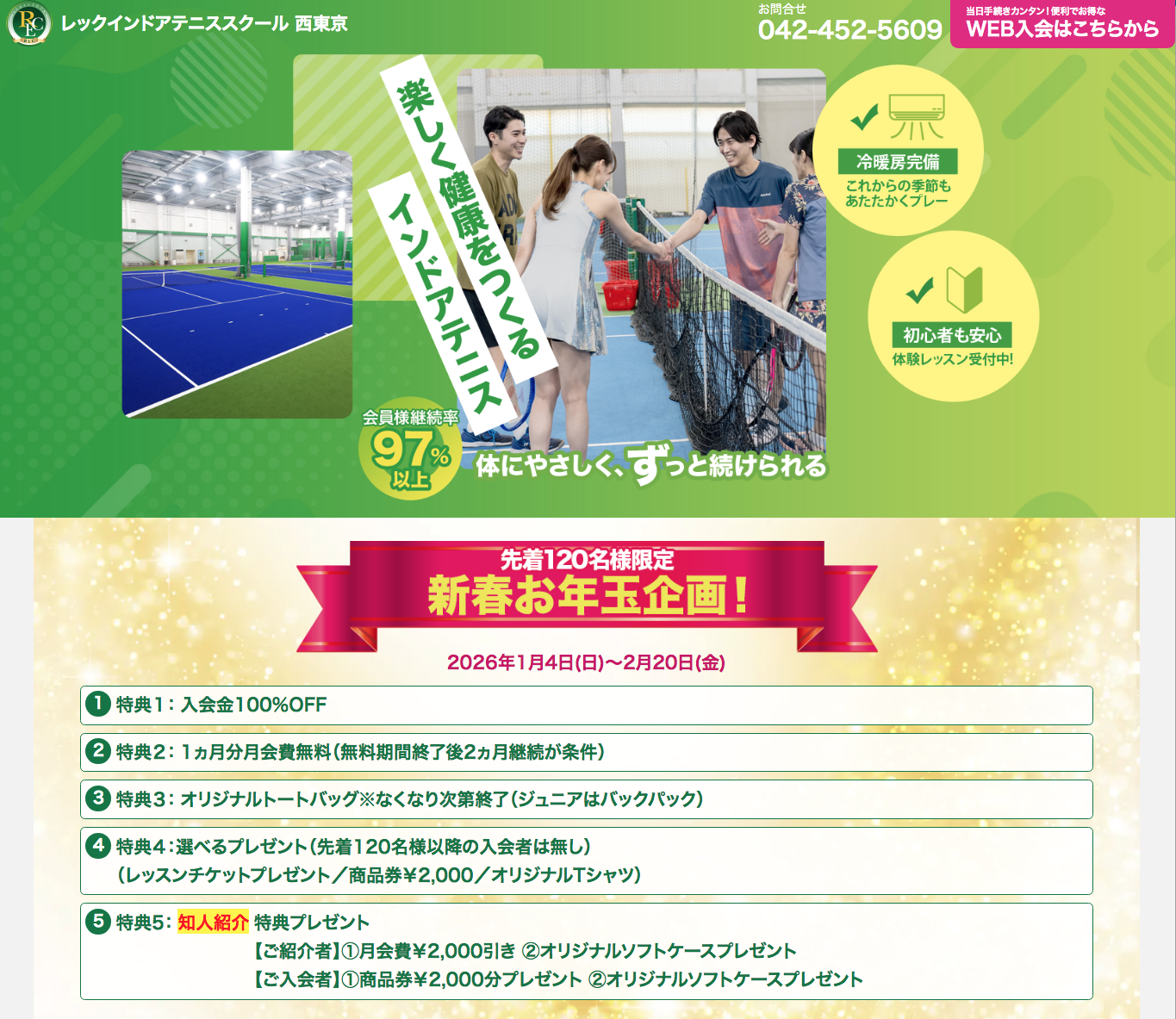 レックインドアテニススクール西東京・キャンペーン情報