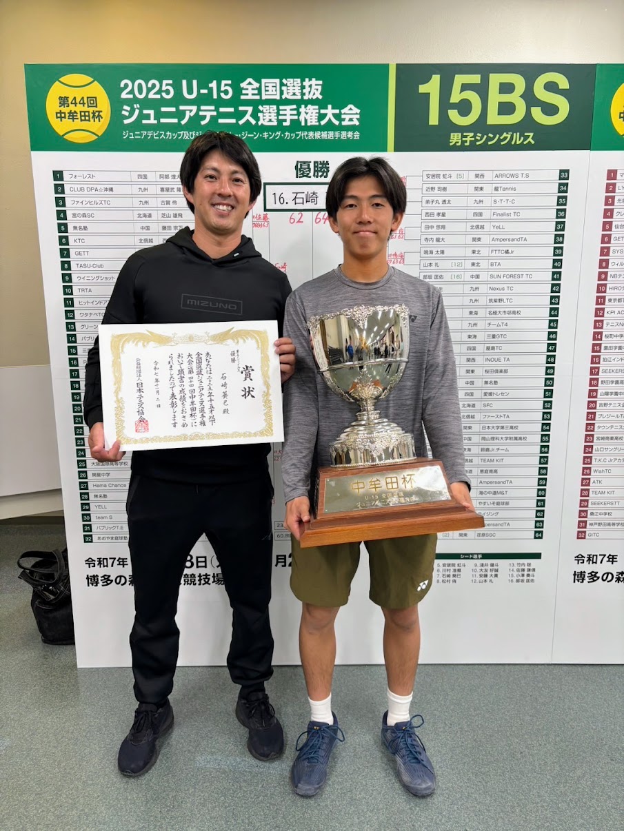 2025年11月02日 2025 U-15全国選抜ジュニアテニス選手権大会・優勝! 2025 U-15全国選抜ジュニアテニス選手権大会(中牟田杯)にて、 EC WASEDA CLUB TENNIS ACADEMYの石崎葵選手が優勝しました! U-15歳以下男子シングルス決勝戦 石崎葵已 6-2.6-4 寺内 龍大(AmpersandTA 関東 ) (佐藤一平コーチと) 応援ありがとうございました! #teamrec #rectennis #レック興発 #teamrecを応援しよう #recwasedaclubtennisacademy GREAT Team REC DAY!開催(12月1日) 乾祐一郎プロ ITF TOUR ダブルス準優勝! テニススクール ゴールデンキッズ(運動能力向上プログラム) 不動産オーナー募集 事業所一覧