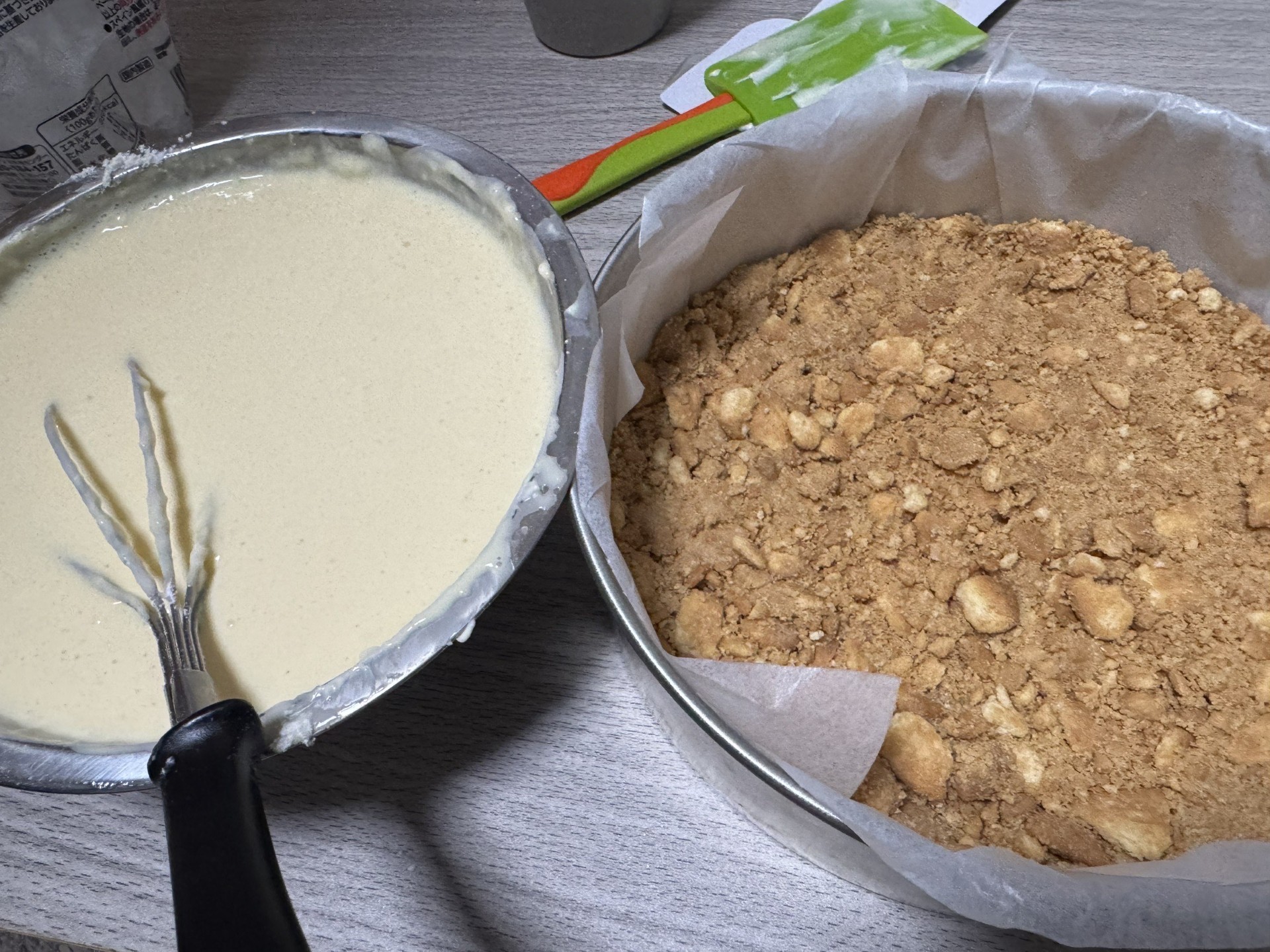 前回作ったチーズケーキは、焼いたらチーズが分離してしまうという悔しい結果に…。