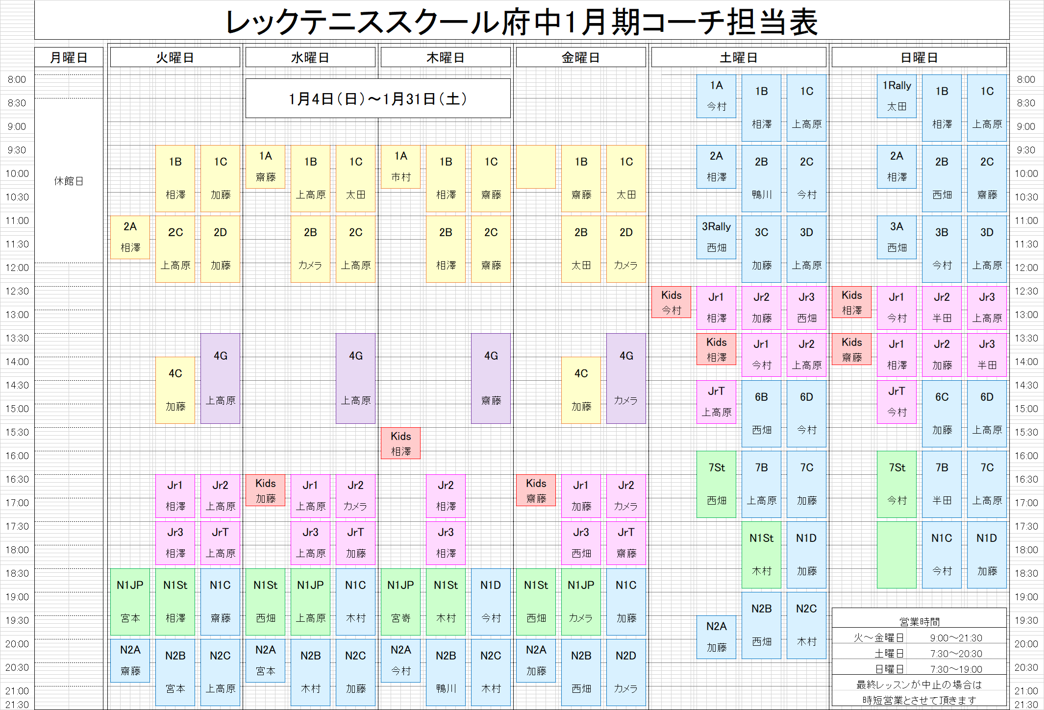 【年末年始イベント】空き状況 1/2(金)9:00時点