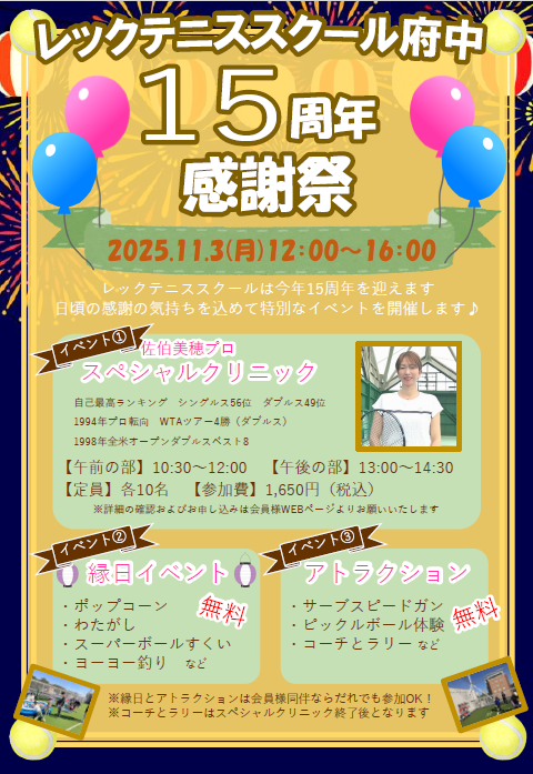 さて、3連休最終日の月曜はご案内どおり「15周年感謝祭」です。