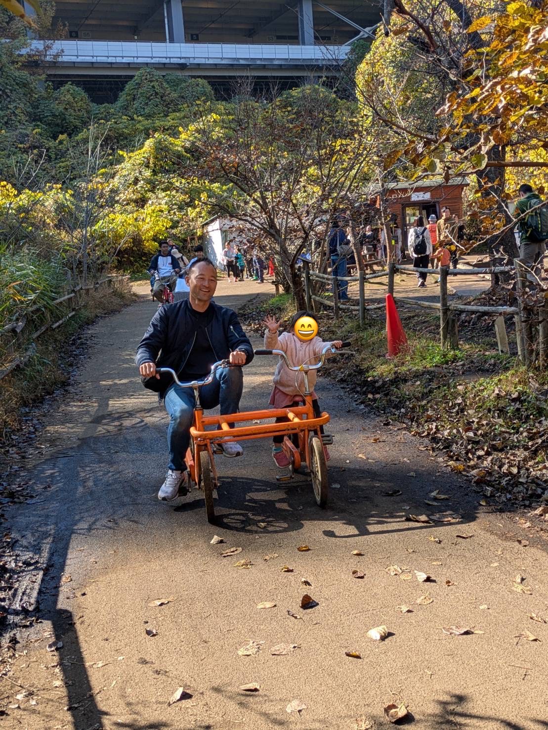 下の娘はまだアスレチックは難しいので、幼児用の遊具と自転車でウキウキ。