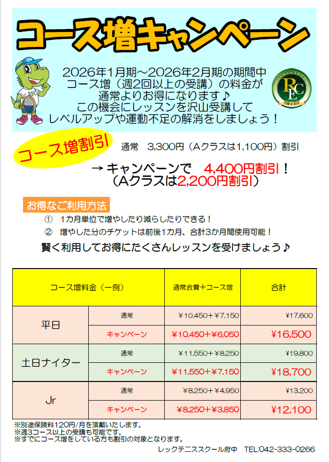 そんな寒さの中ではありますが、「コース増キャンペーン」がございます。