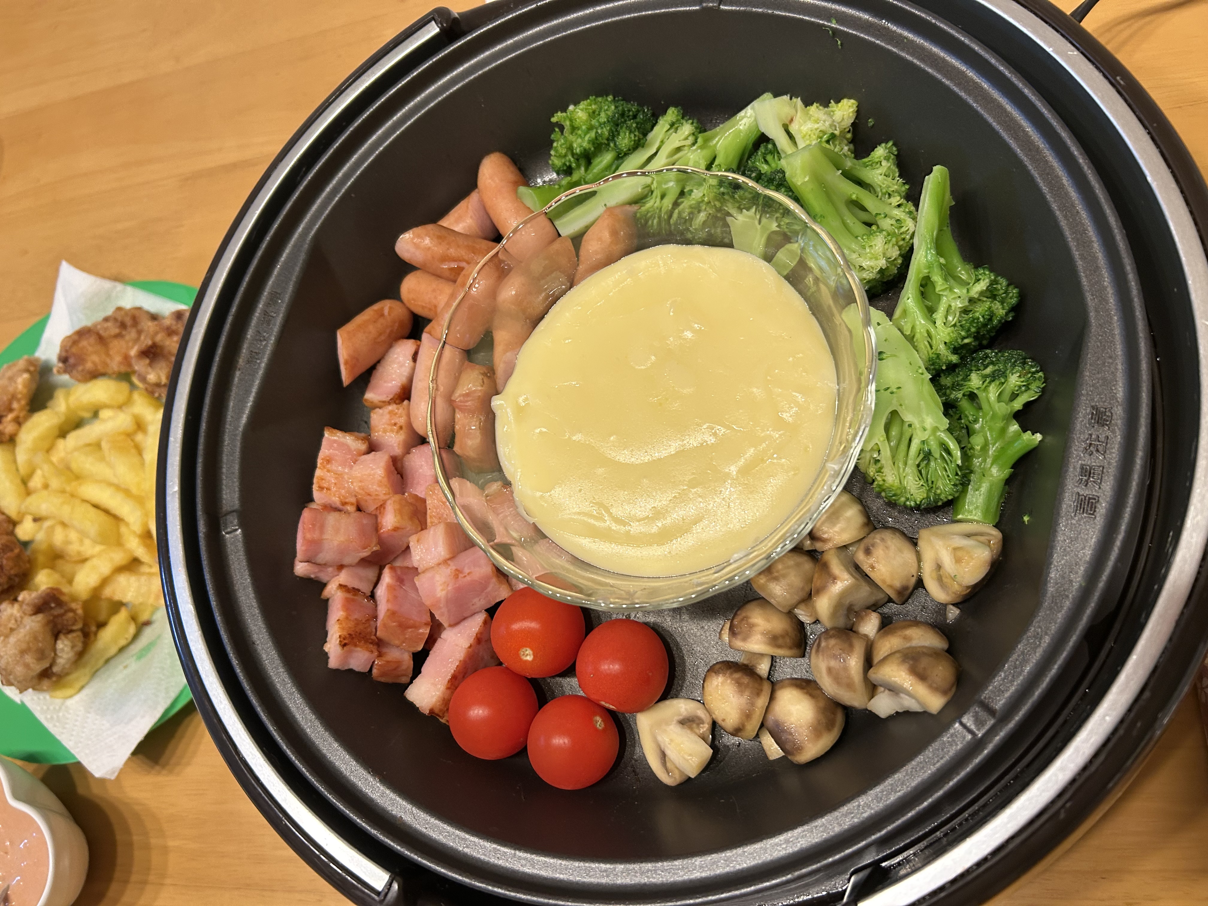 我が家のクリスマスの定番「チーズフォンデュ」を準備。