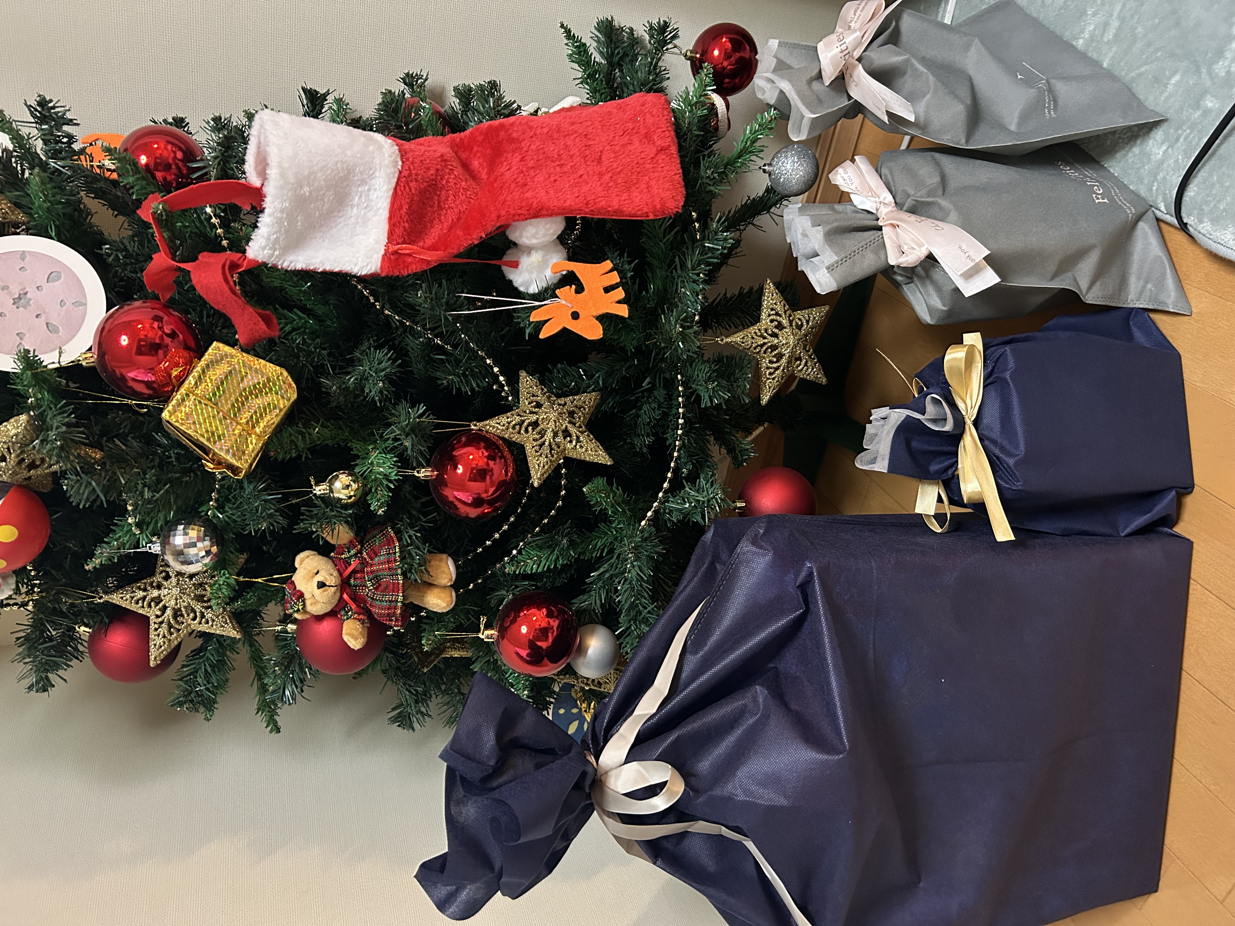 いつもは寝起きがぐずぐずする子供たちも、今日はさっと起きて一目散にクリスマスツリーの下へ。