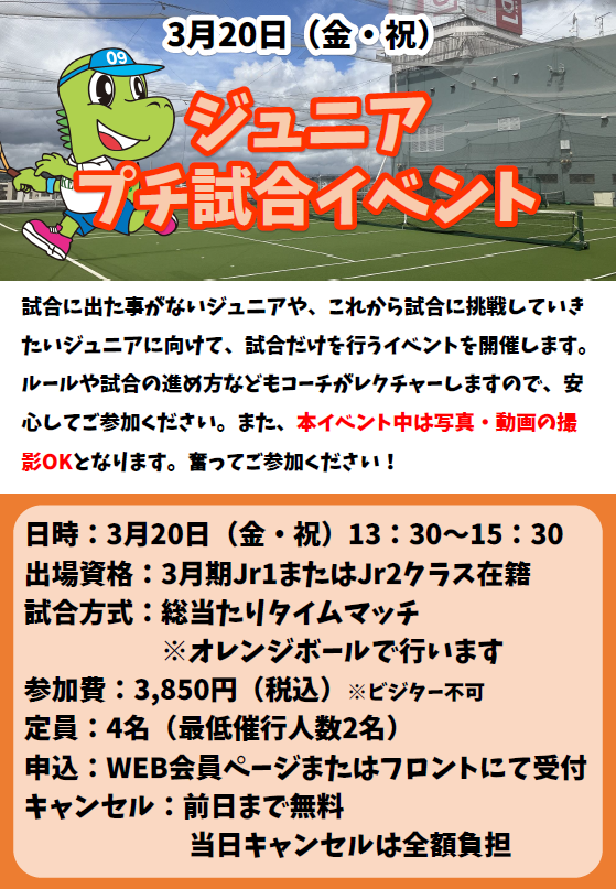 試合といえばジュニアの試合も2/23(月)にイエローボール大会。