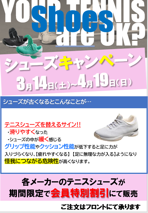 来週の土曜日14日からは「シューズキャンペーン」が実施いたします。