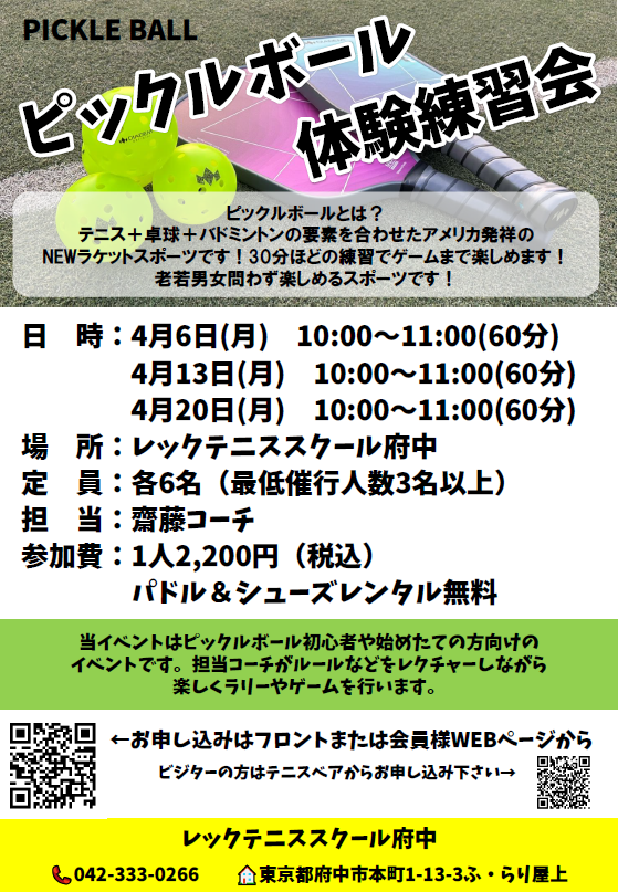 さて、明日はピックルボール体験練習会のイベントを開催!