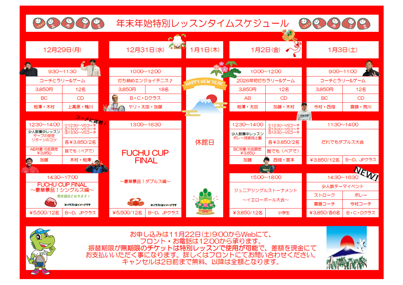 >【年末年始イベント】空き状況 12/29(月)11:00時点
