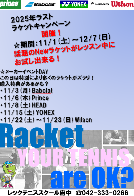 昨日から今年最後のラケット&ストリングキャンペーンが実施しています。