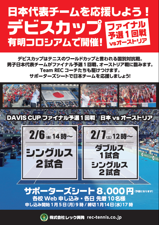 【デビスカップを応援しよう!】サポーターズシート予約のご案内