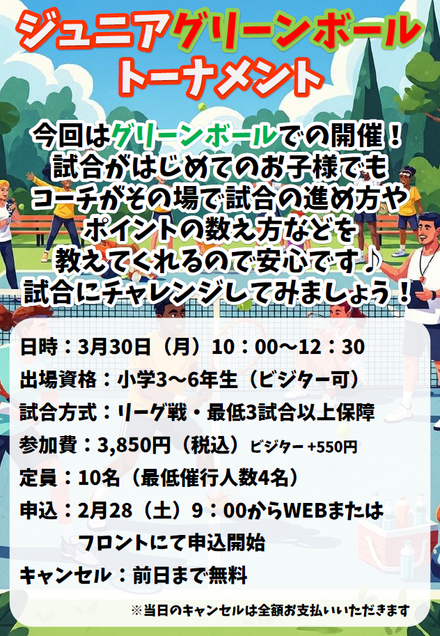 >3月30日(月)【ジュニアグリーンボール大会】開催のお知らせ