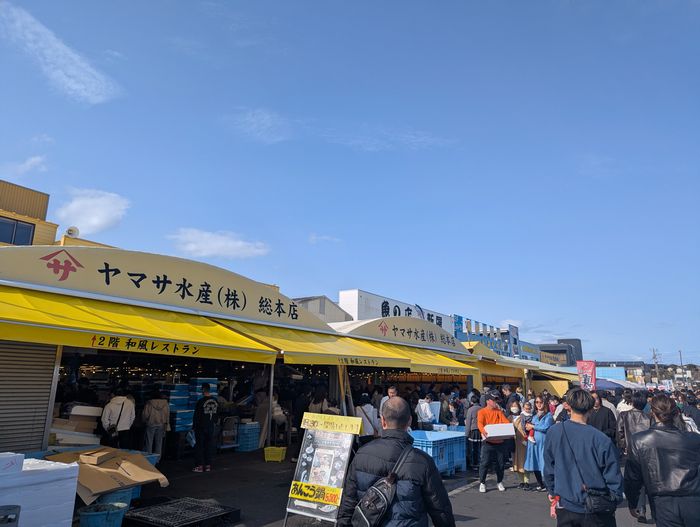 安くて新鮮な魚介を求めて大勢の人々が群がってました。