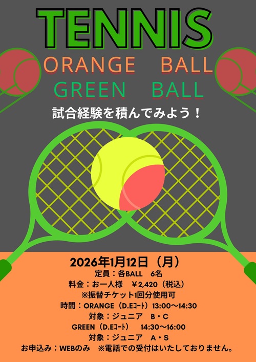 ジュニア ORANGE・GREEN ボール試合のお知らせ
