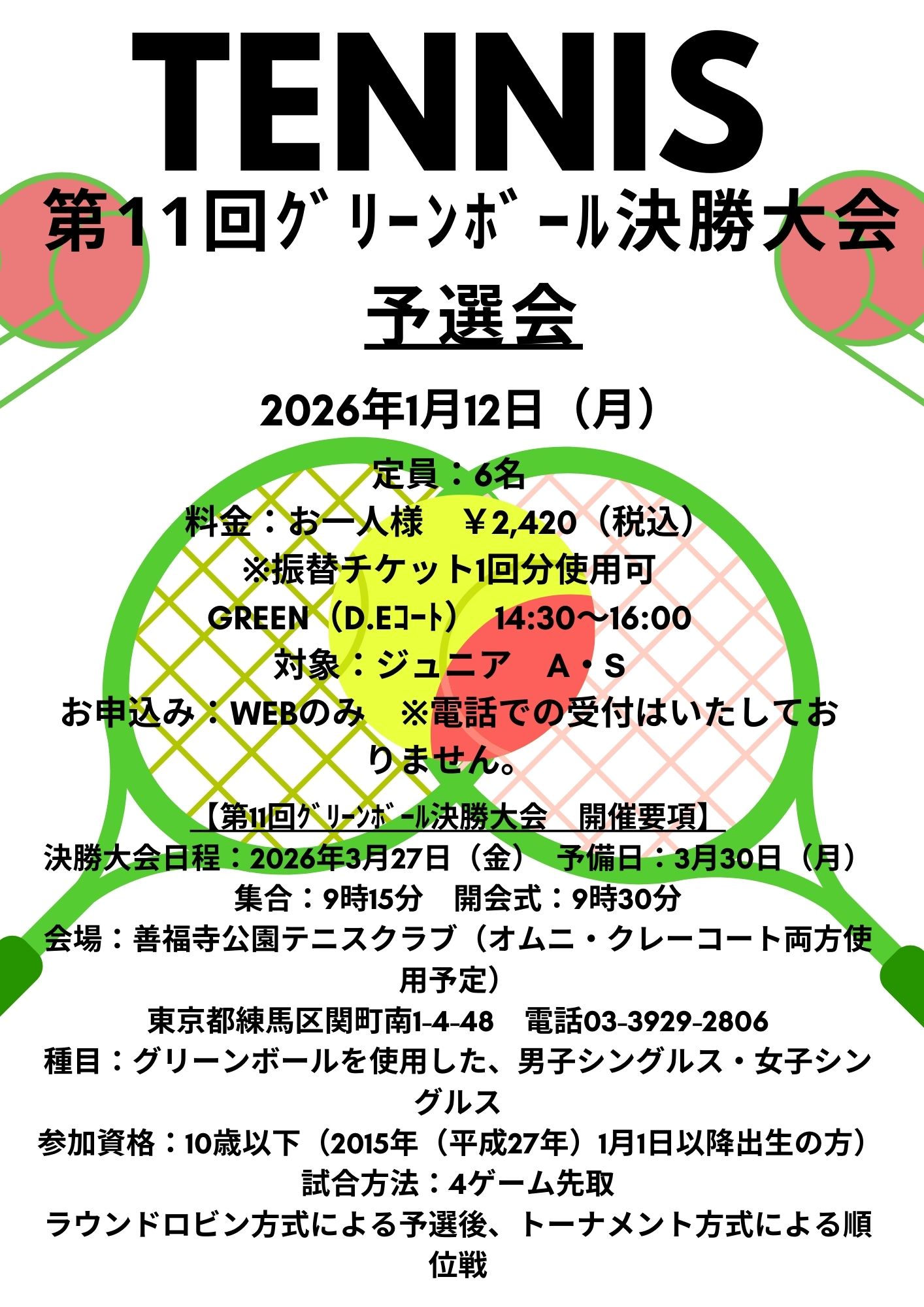 ジュニア GREEN BALL 予選会のお知らせ(12/17更新)