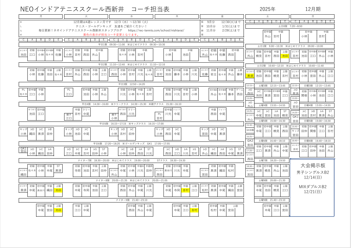 2025年12月期のコーチ担当表を掲載しておりましたが、