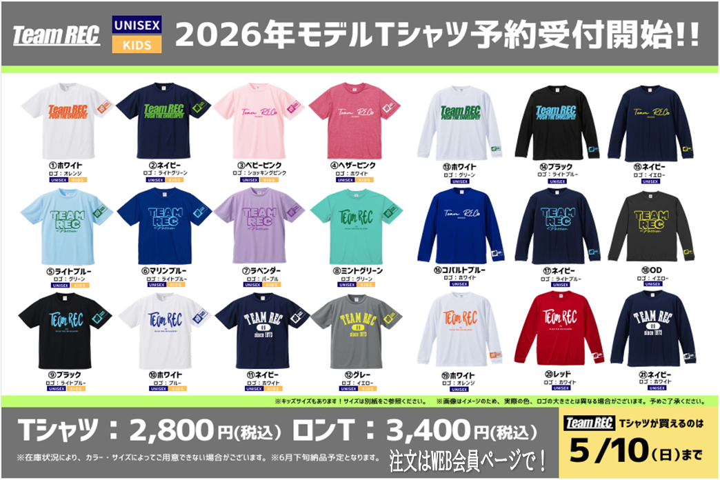 2026年『TeamREC』Tシャツ予約受付開始!