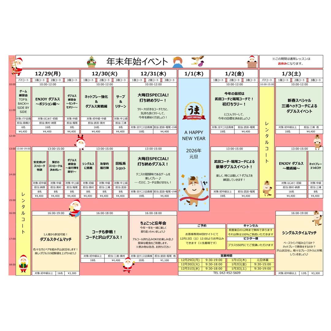 12月29日(月)~1月3日(土)までレック西東京は、イベントレッスン期間となります。