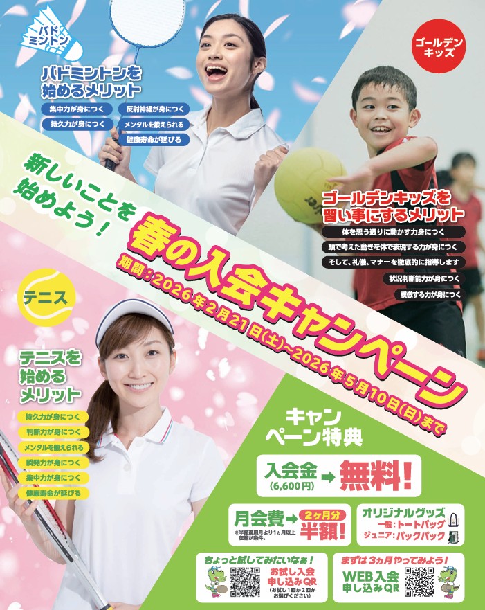レックインドアテニススクール西東京は「テニス」、「バドミントン」、「ゴールデンキッズ」の3つが習えるスクールです。皆様、お待ちしております!