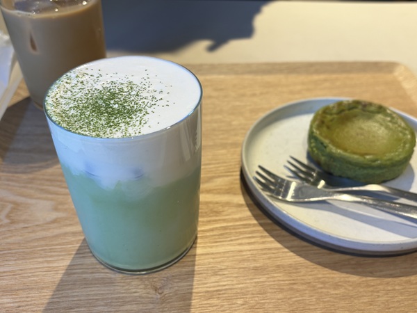 カフェで抹茶のチーズケーキをいただいたのですが珍しい形でとても美味しかったです✨
