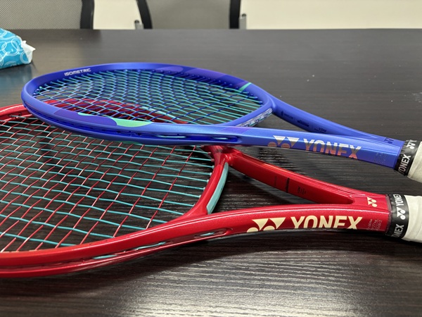 最近はストリングを縦と横で色を変えて張ることにハマっています!
