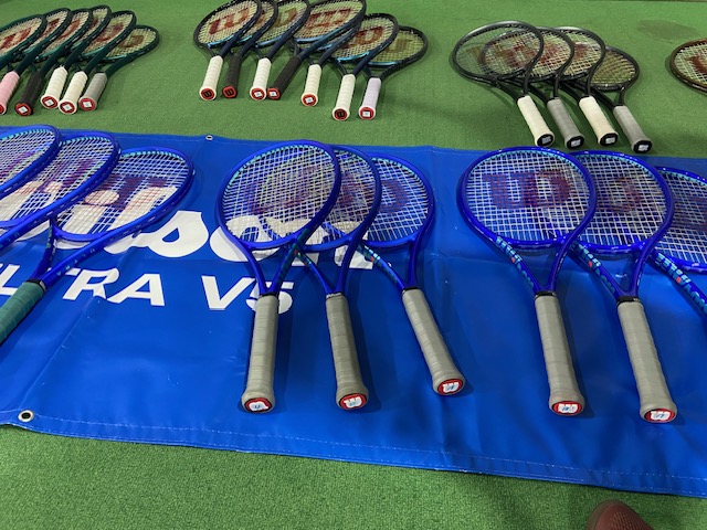 コート後ろに試打会ラケットを展開しますので、色々試打してみてください!