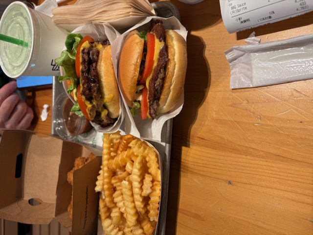 シェイクシャック 2025.10.5 皆さん、 こんにちは!カメラ ヤリです。 今週はハンバーガーを食べに行きました! ハンバーガーを食べたい時によくバーガーキングで食べますが今回はシェイクシャックという店で食べました! 他のファストフードに比べて少し高かったですが美味しかったので良かったです! 皆さん、シェイクシャックを知っていますか?教えてください! よろしくお願いいたします。 カメラ ヤリ 前の記事