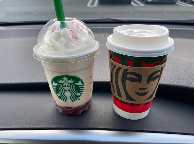 その後はスタバに行って、新作のストロベリーフラペチーノとジョイフルメドレーを頼みました。