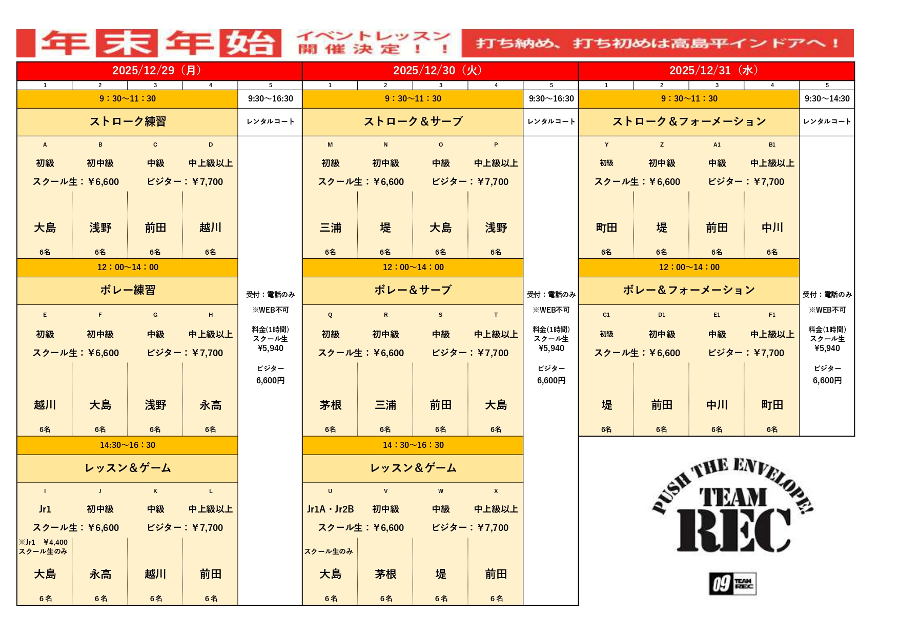 年末年始イベントレッスンのご案内