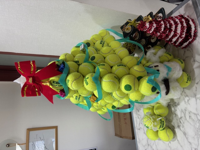 午後はテニスボールを使ってクリスマスの飾りを作ってほしいと頼んだところ