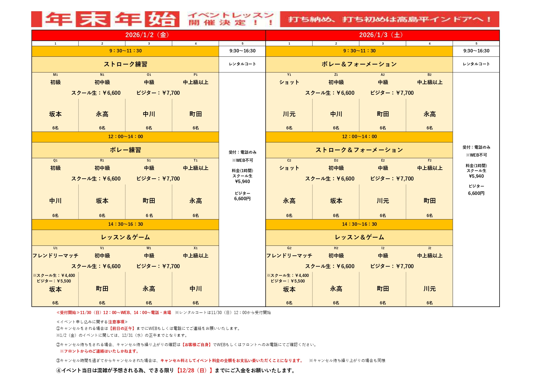 本日から年末年始特別レッスンの受付開始です。