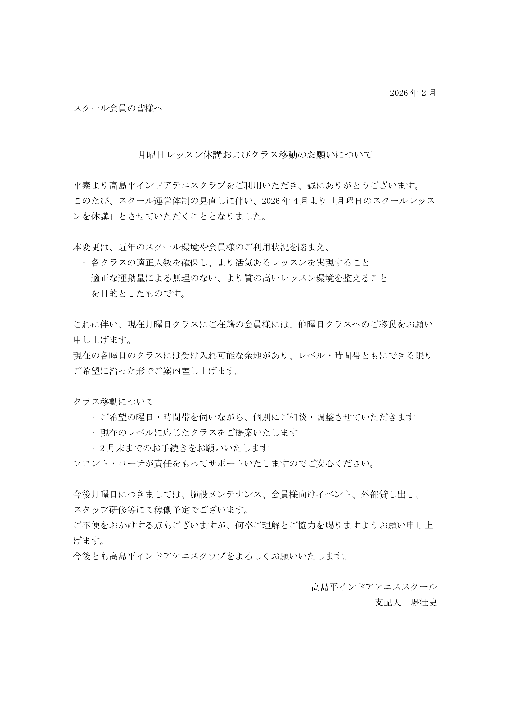 日頃より当スクールをご愛顧いただき誠にありがとうございます。